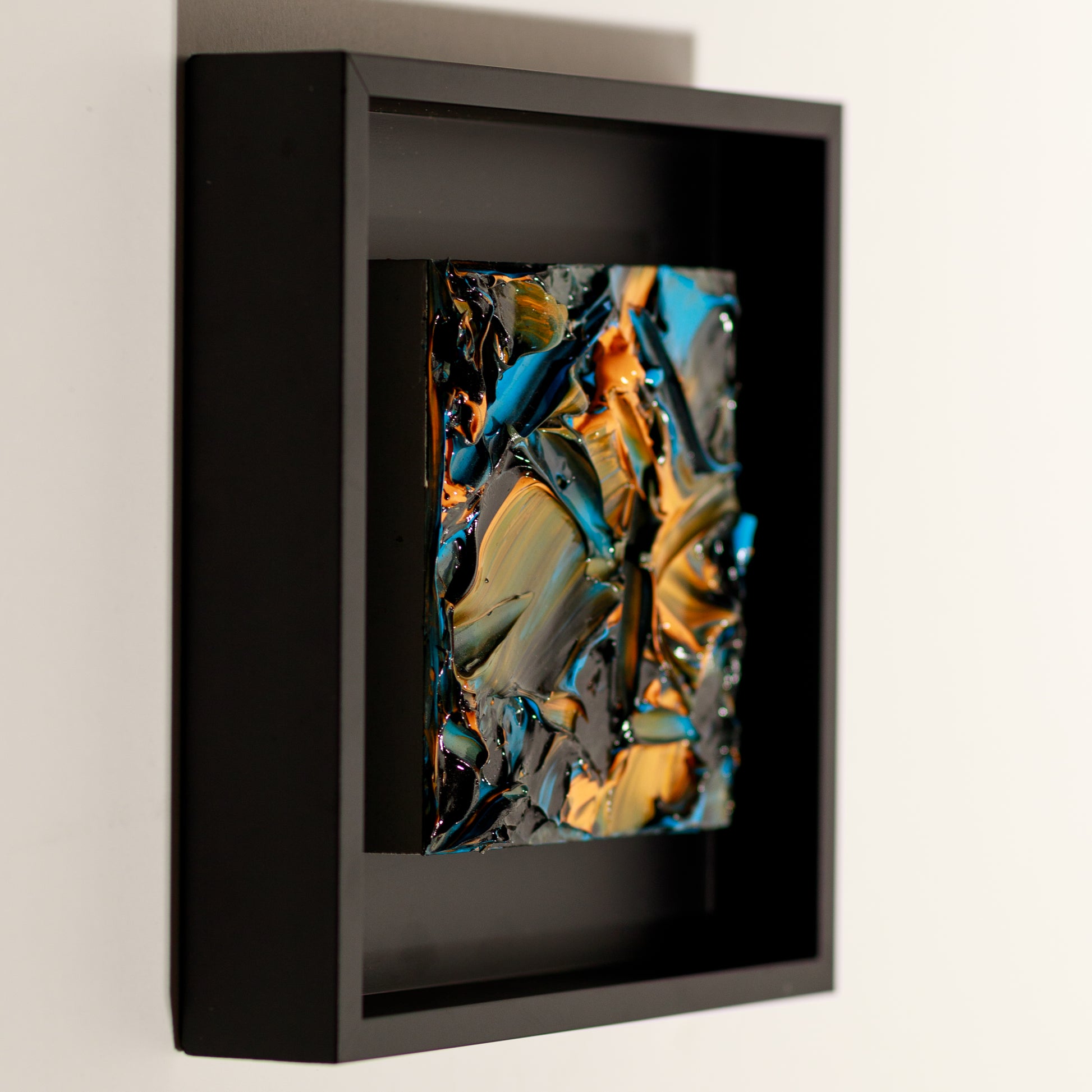 Juicy Baby (2024) by Steve Banaszek is an acrylic painting on a wood block, measuring 6.75 x 6.75 x 1.75 inches. The vibrant artwork is presented in a sleek black frame, enhancing its bold colors and dynamic composition. This piece offers a fresh, playful perspective, making it a unique addition to any collection.